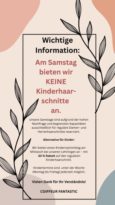 Für mich geht es nicht nur um das Haar, sondern darum, dass du dich gesehen, verstanden und natürlich schön fühlst. Mit meiner offenen, ehrlichen und freundlichen Art möchte ich, dass du dich bei mir rundum wohl fühlst. Jeder Mensch ist einzigartig – und genau das soll auch deine Frisur widerspiegeln.