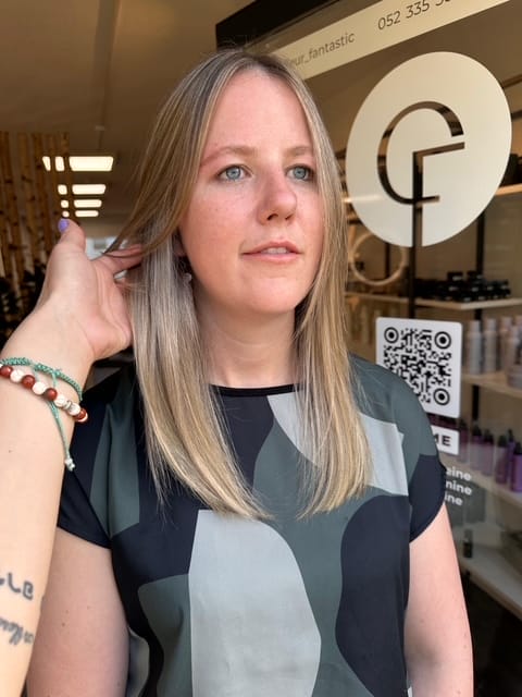 Seit August 2023 absolviere ich die Lehre zur Coiffeuse EFZ. Ich kann mich als eine offene, kreative und hilfsbereite Person beschreiben. Neue Menschen kennenzulernen und diese verwöhnen zu dürfen, bereitet mir sehr viel Freude. Diesen Beruf zu erlernen bedeutet für mich vor allem, meine Kreativität zu entfalten und mich zu entwickeln. Mein Team unterstütze ich dabei, wo auch immer ich kann.